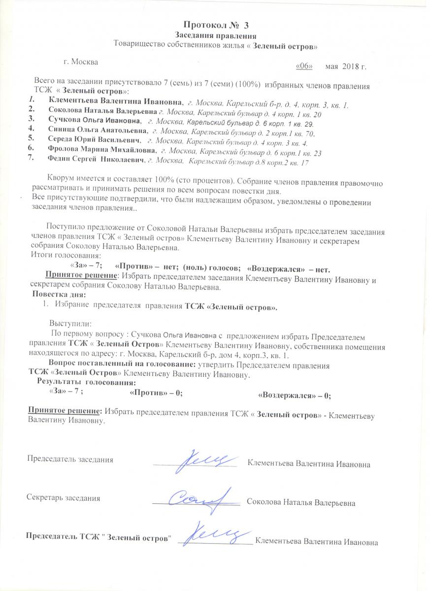 Протокол № 3 заседания правления от 6.05.2018 г.
