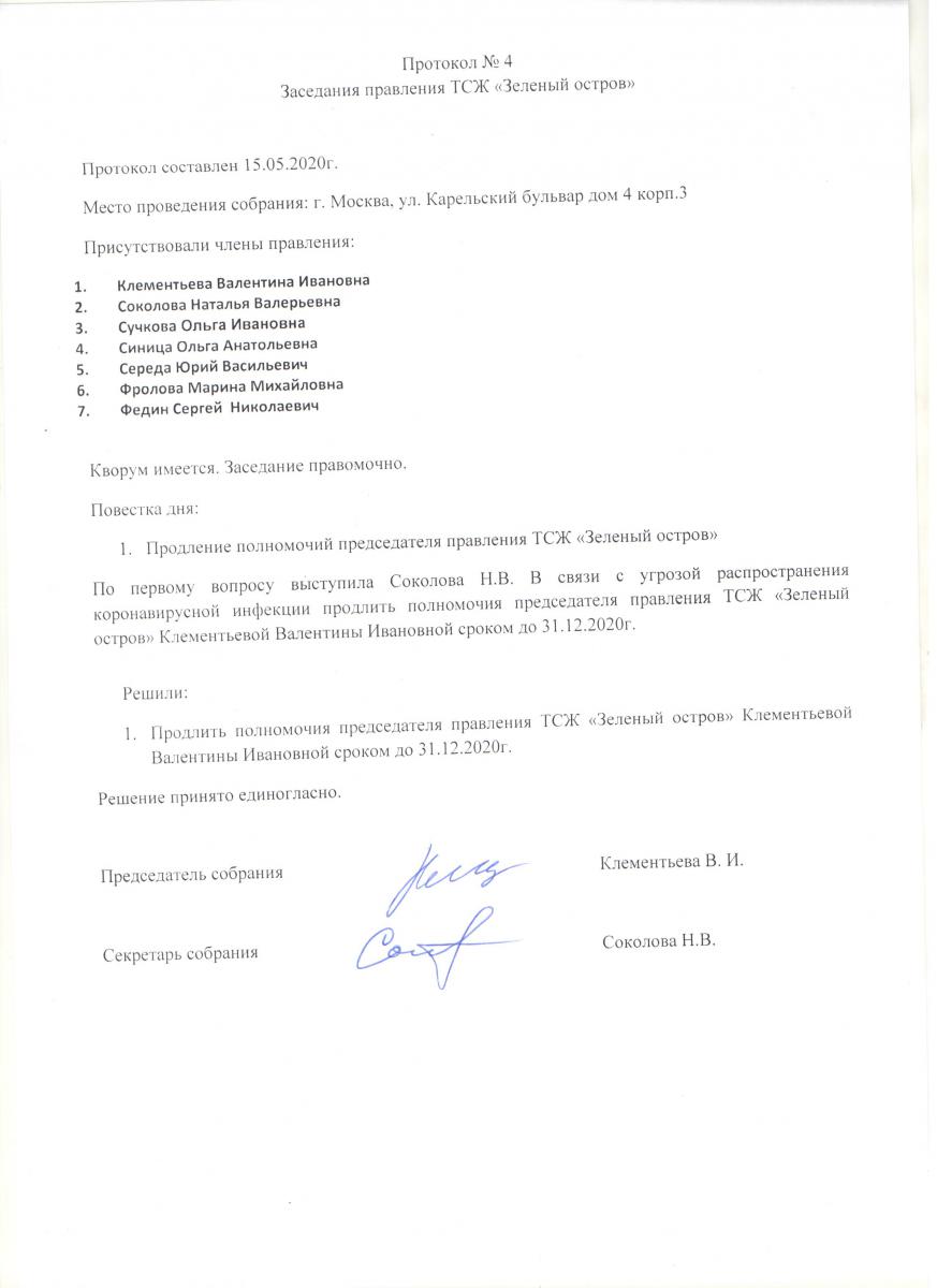 Протокол №4 заседания правления от 15.05.2020 г.